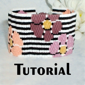 These designs are worked in one and two drop peyote stitch and have both large graph and word charts. Some tutorials include illustrations for designs with special features like shaping or clasp where you need to see the thread path.