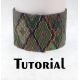 Harlequin design with Spring greens in mind brought this one into being. Odd count 2-drop peyote stitch with a hidden overlap clasp utilizing snaps.