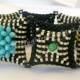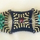 I love black and white and love it even more with splashes of bright color so this design is one of my favorites. Clustered Rizo beads remind me of Chrysanthemum flowers and stacking peyote squares with increase/decrease techniques to create pyramid-like structures combined to create the name.