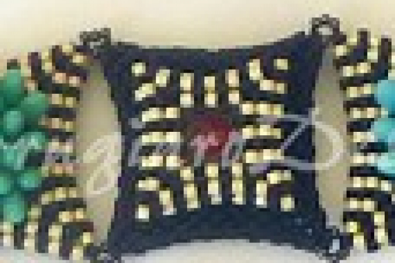 I love black and white and love it even more with splashes of bright color so this design is one of my favorites. Clustered Rizo beads remind me of Chrysanthemum flowers and stacking peyote squares with increase/decrease techniques to create pyramid-like structures combined to create the name.