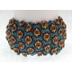 A wonderfully textural cuff that can be worn two ways. This is deceptively easy to make with the cuff being two-drop peyote. The clasp is created with a large (size 10/20mm) snap which is beaded in an adapted circular peyote to make a striking focal component.