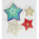 The stars can be made to different sizes starting at about an inch. The stacked star comes in at about 2 1/4" and the ornament is 2" diameter, 2 1/2" tall without the tassel....add another 4 to 5" with the tassel.